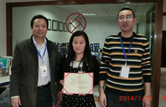2013年12月31日,经过公司全体人员的综合评选,技术部主管王莎被大家推选为“2013年度优秀员工”,这其中凝聚着